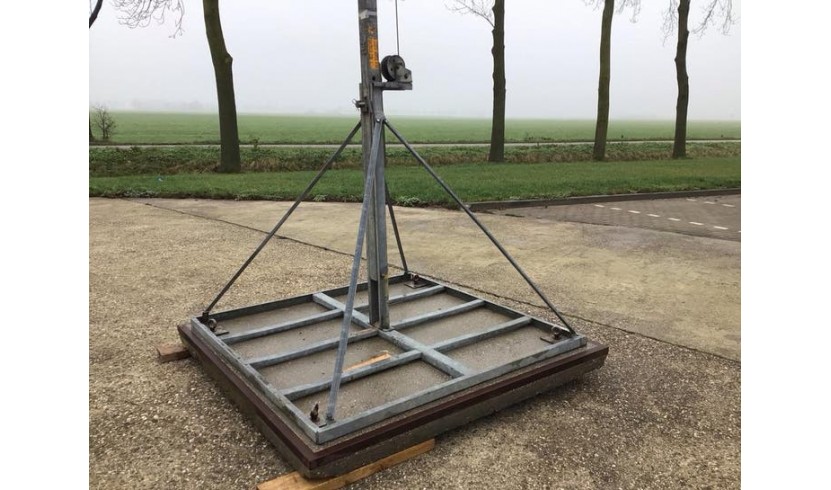 Het gewicht inclusief stelconplaat en mast is ca. 1500kg