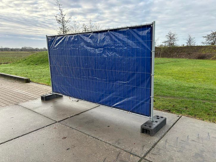 Interesse in: "46 Bouwhekken met donkerblauwe zeilen - Eenmalig gebruikt"