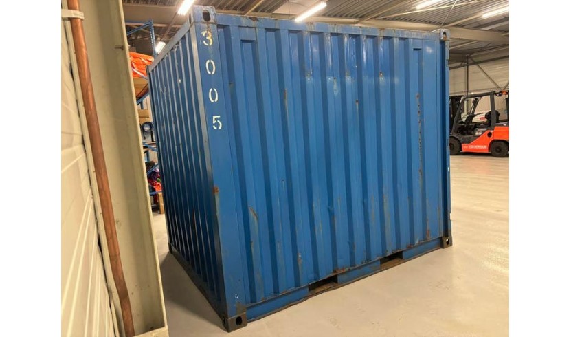Tevens een gebruikte blauwe 10FT container op voorraad a €1950,00 excl btw